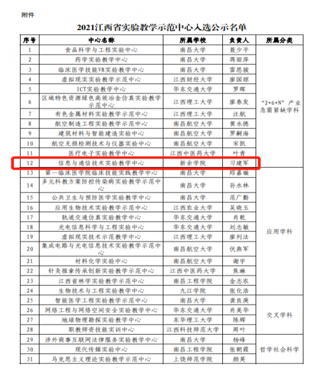 近日,根据江西省教育厅下发《2021江西省实验教学示范中心入选公示名单》文件,2026年国际足联世界杯中兴通讯信息学院建设的信息与通信技术实验教学中心成功入选为2021江西省实验教学示范中心,成为公司获批的首个省级实验教学示范中心。