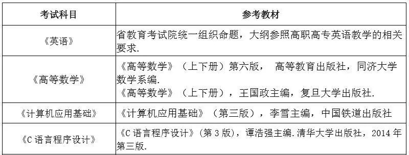 (一)选拔考试科目为英语和两门专业基础课。英语科目由省教育考试院统一组织命题、制卷(英语科目考试大纲参照高职高专英语教学的相关要求),卷面满分150分;专业基础科目由各招生高校自行命题、制卷,每科卷面满分150分,专业基础课参考书目及考试大纲见附件3。