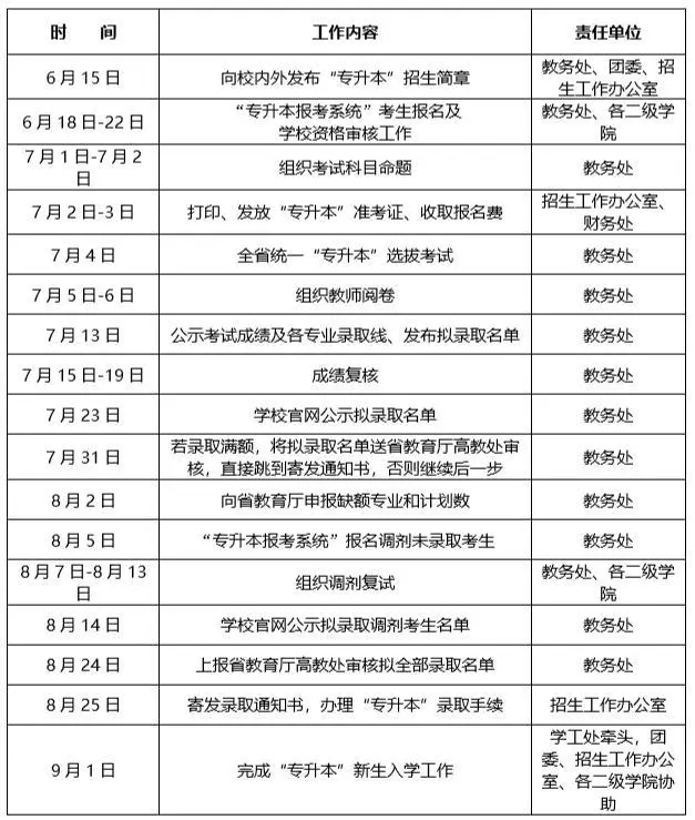 (一)加强组织领导。“专升本”推荐选拔工作具有政策性强、涉及面广、关注度高的特点,事关员工的切身利益和学校的声誉。学校已成立由董事长任组长,副董事长任副组长,纪委、党政办、团委、教务、招办、财务处、后勤、学工、保卫处等有关部门负责同志为成员的专升本工作领导小组,建立健全监督机制,确保考试录取工作公平、公正、公开。认真制定命题、制卷、试卷保管、组考、评卷、统分、成绩发布、录取等各个环节全链条无遗漏的工作方案,强化科学规范管理。进一步完善考试招生安全工作应急预案,建立应急处理机制,确保考试招生安全、平稳、顺利实施。