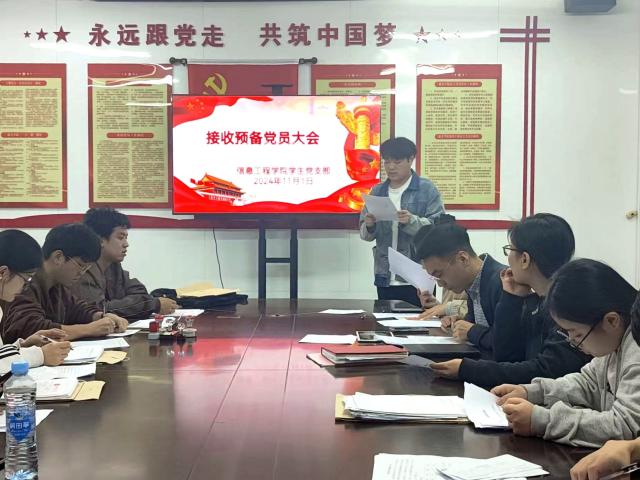 本次大会严格按照党组织接收预备党员程序顺利进行,在庄严的国歌声中拉开了会议的序幕。大会围绕接收吴清华、肖玲两位同志为中共预备党员事宜进行。2名发展对象分别向党组织汇报自身对党的认识与理解,入党动机,个人经历和家庭主要社会关系,并结合自身实际情况表明了加入中国共产党的决心和信念。经大会严格审查,正式党员以无记名投票方式进行表决,均全票通过接收吴清华、肖玲两位同志为中共预备党员。
