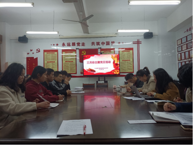 3月8日下午2点40分,中兴通讯信息学院员工党支部在主b会议室开展了三月份主题党日活动,该支部全体成员参加会议,会议由支部书记刘渝同志主持。