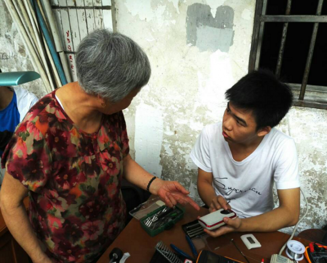在维修的过程中,维修队的成员们熟练地拆开电器外壳,运用自如地使用万用表检查电路,很多电器在他们的手中都得到了重生。前来维修的市民们拿到修好的电器时,也给予了我们高度的评价,而对于那些没有修好的电器,同学们也认真地向他们解释原因。