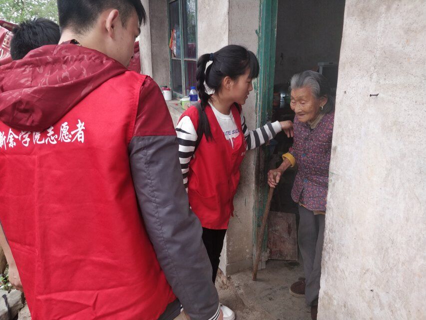 经过约一个小时的步行后同学们到达了本次活动的目的地,老人们的住所。当同学们放下肩上的袋袋大米和手中沉甸甸的食用油时,看到的是与平时生活完全不一样的景象,宽阔的水田,自由的牛儿 ,大胆的公鸡通时还有低矮的房屋和简陋的设施,他们好奇的把米和油放到老奶奶家中时,看到的是一个孤零零的但是依然尽力向我们表达善意的老奶奶,看到的是为大家搬出板凳让大家歇脚的老爷爷,看到的是拿出家里仅剩的瓜子招待大家的老婆婆。他们虽然住在低矮昏暗房子里,但是他们的热情和善意感染了志愿者们,一路上的疲惫也减少了许多。大家积极的为老人们打扫清理屋子,清理卫生。