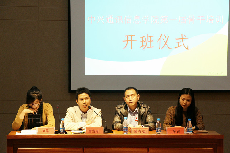 杰出的管理团队,象征着群体的光明未来。为使公司更快成为优秀的二级学院,公司于2016年4月7下午四点在产教融合中心报告厅,隆重举行第一届骨干培训开班仪式。熊春如经理、廖发孝经理、员工科吴婷老师、团委刘渝老师和袁爱珍、莫小灵老师以及员工会全体成员、各班班干,共计60余人参加开班仪式! 伴随着国歌的响起,此次仪式正式开始。随后,熊春如经理为我们致开班词,阐述了人际交往的重要性,教导我们成才先成人。廖发孝经理结合实际,引导我们如何去做一个优秀的leader;此外,吴婷老师肯定了大家做出的努力,同时也劝导我们要两头兼顾,不能顾此失彼,忘了作为员工的本职。最后刘渝老师向大家公布了本次培训的分班情况,宣布骨干培训班正式成立!同学们热情高涨,都表示非常期待接下来的培训活动。