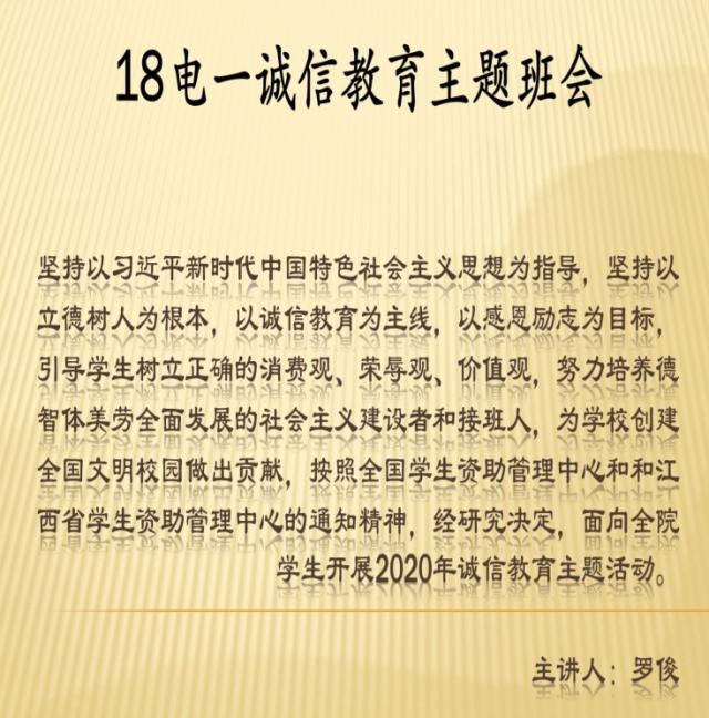 为坚持以习近平新时代中国特色社会主义思想为指导,坚持以立德树人为根本,以诚信教育为主线,以感恩励志为目标,引导员工树立正确的消费观、荣辱观、价值观,努力培养德智体美劳全面发展的社会主义建设者和接班人。中兴通讯信息学院面向全院员工开展2020年诚信教育主题活动。