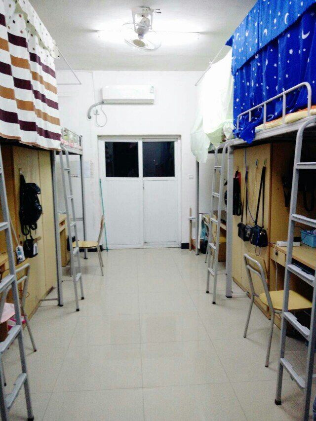 新建的宿舍大楼,6人/间,每间都配备有空调哦,再也不会热成狗了!棉被、洗漱用品可自己购买也可在学校统一购买!